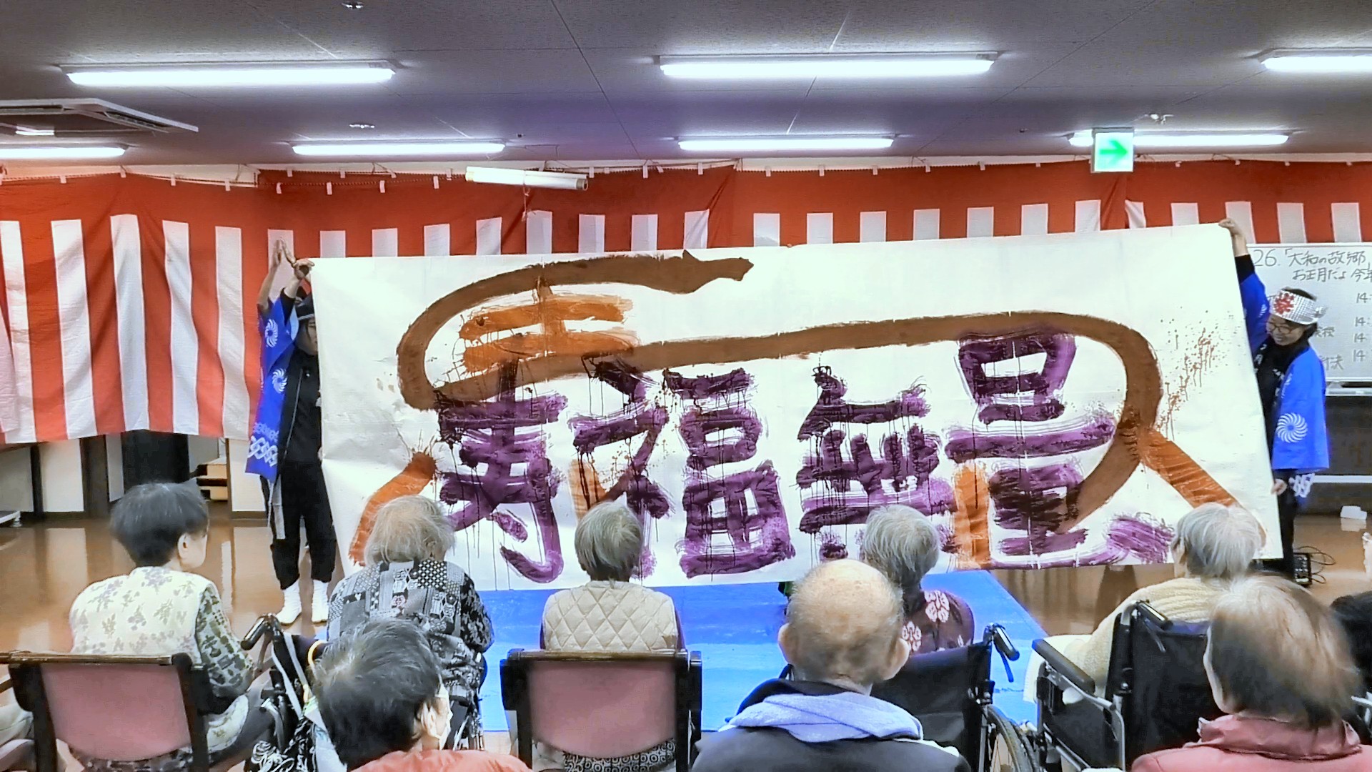 ・1月2日に大和の故郷で、毎日のレクリエーションの時間を利用して。ミニレク「令和8年1月2日 大和の故郷 新年会(大和の故郷 お正月だよ 今年はきっと、馬九いくよ)を行いました。大和消防団による「梯子乗り」や、書初め、歌や踊りなど、通常の行事より短い時間でしたが、入居者の方と一緒に楽しく過ごすことができました。